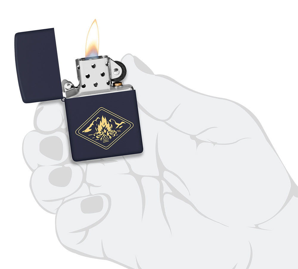 Reúnase alrededor de su próxima hoguera con este encendedor clásico Navy Matte. El sencillo diseño Laser Engrave representa una relajante hoguera en lujosos tonos latón y está listo para cualquier aventura al aire libre.