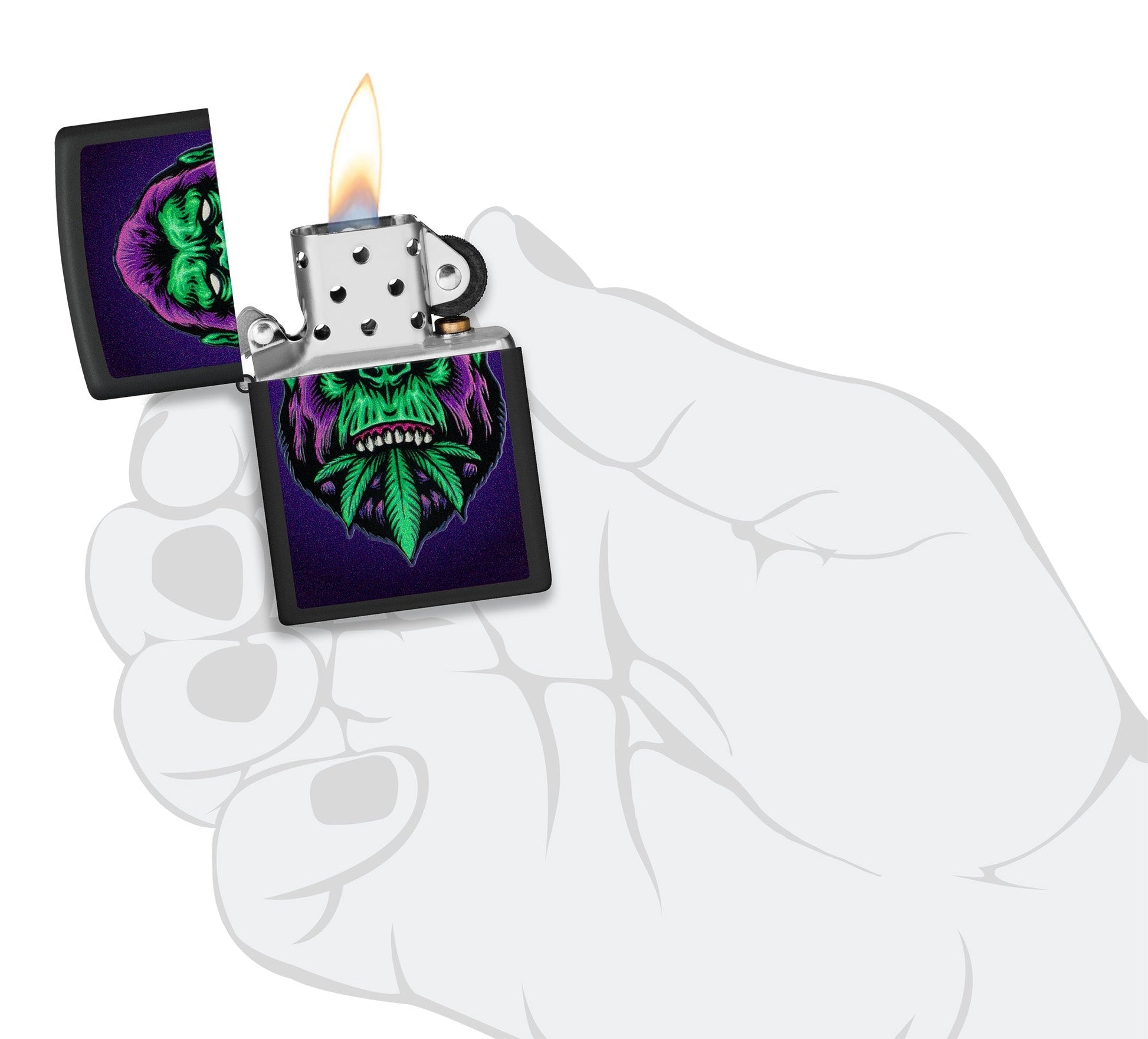 El fascinante gorila de cannabis brilla bajo la luz negra y atrae así todas las miradas. Esta poderosa imagen simboliza la fuerza, la cercanía a la naturaleza y un cierto carácter salvaje. Con su colorido detallado y el motivo de luz negra resplandeciente, el mechero ofrece un espectáculo impresionante. La luz negra añade una dimensión adicional al motivo, que cobra vida con un brillo fascinante bajo la luz ultravioleta. Una auténtica atracción para todos los que aprecian la combinación única de arte, naturaleza y tecnología.
