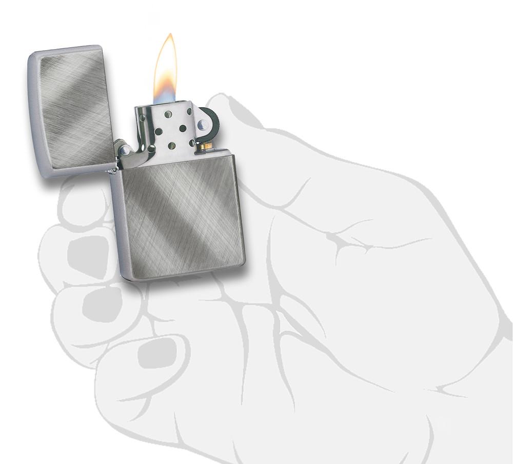 ¡El clásico acabado de cromo cepillado de Zippo recibe un nuevo look! El cepillado dirigido crea patrones de diseño creativos con el conocido atractivo del cromo cepillado tradicional, pero con una perspectiva nueva y refrescante. El patrón diagonal de este encendedor a prueba de viento crea la apariencia de rayas diagonales que se desvanecen de oscuro a claro. Se entrega en un embalaje de regalo. Para un rendimiento óptimo, rellénalo con líquido encendedores de Zippo.