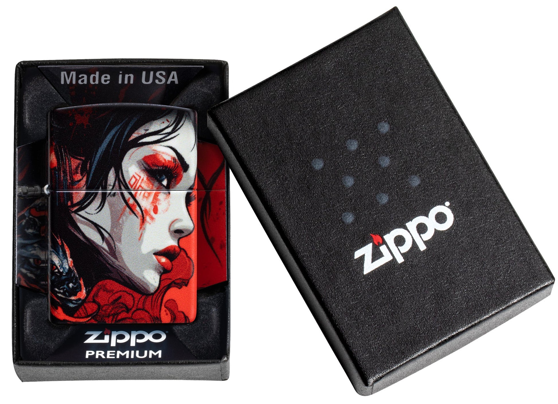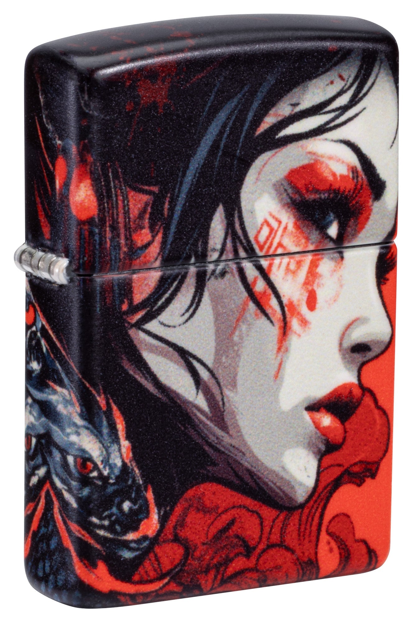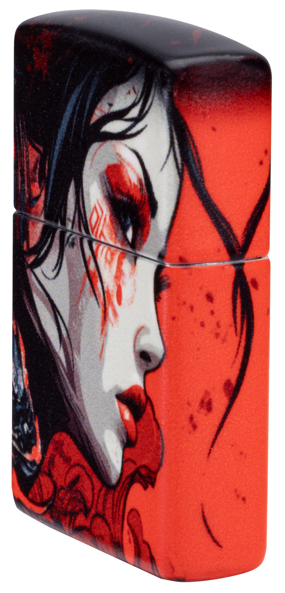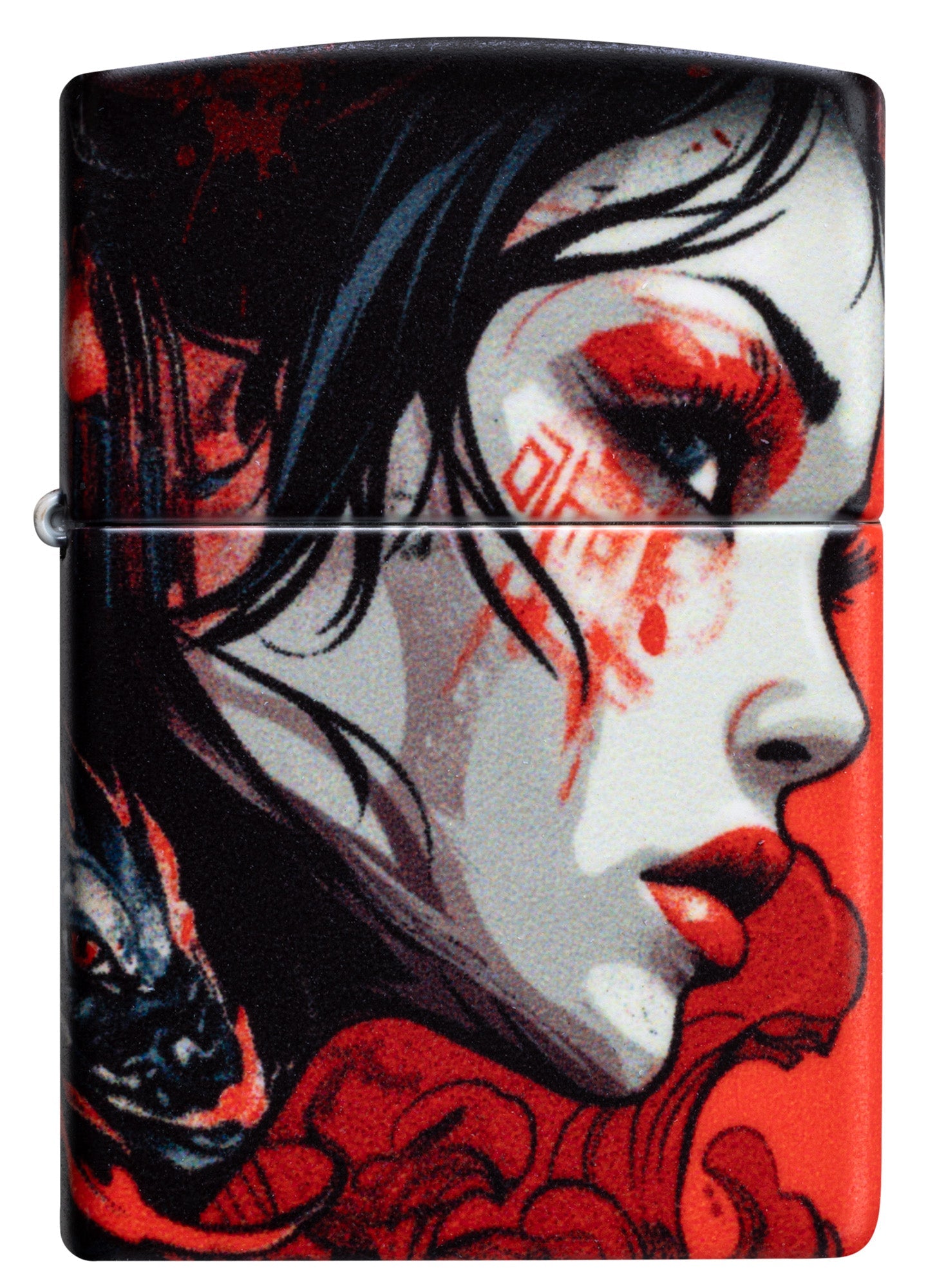 En el Japón feudal, fieras guerreras entrenaban tanto para la batalla como para defender sus hogares y tierras. Este encendedor clásico 540 Color presenta a un valiente samurái en un diseño vibrante y abstracto que se extiende por todos los lados de la pieza.