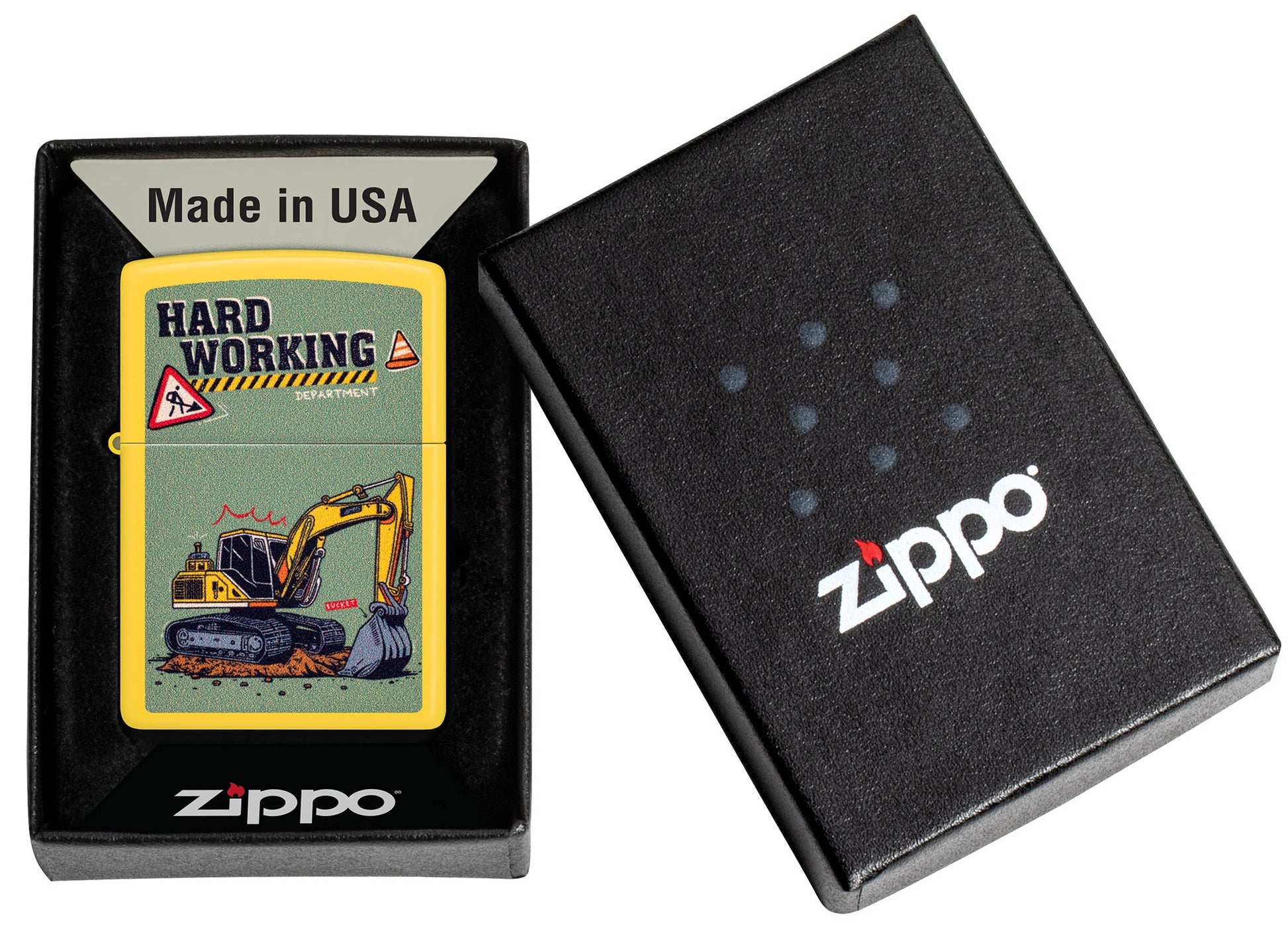 Perfecto para quienes aman o manejan maquinaria pesada, este encendedor clásico Sunflower muestra una vibrante excavadora bajo la inscripción «Hard Working Department» en un audaz diseño a todo color.