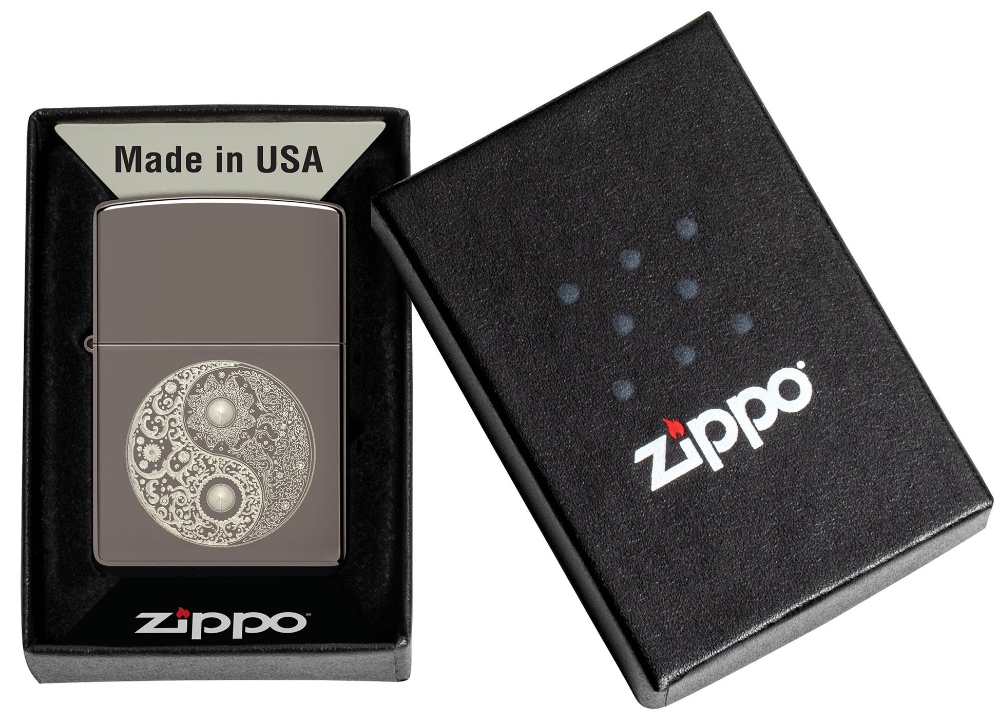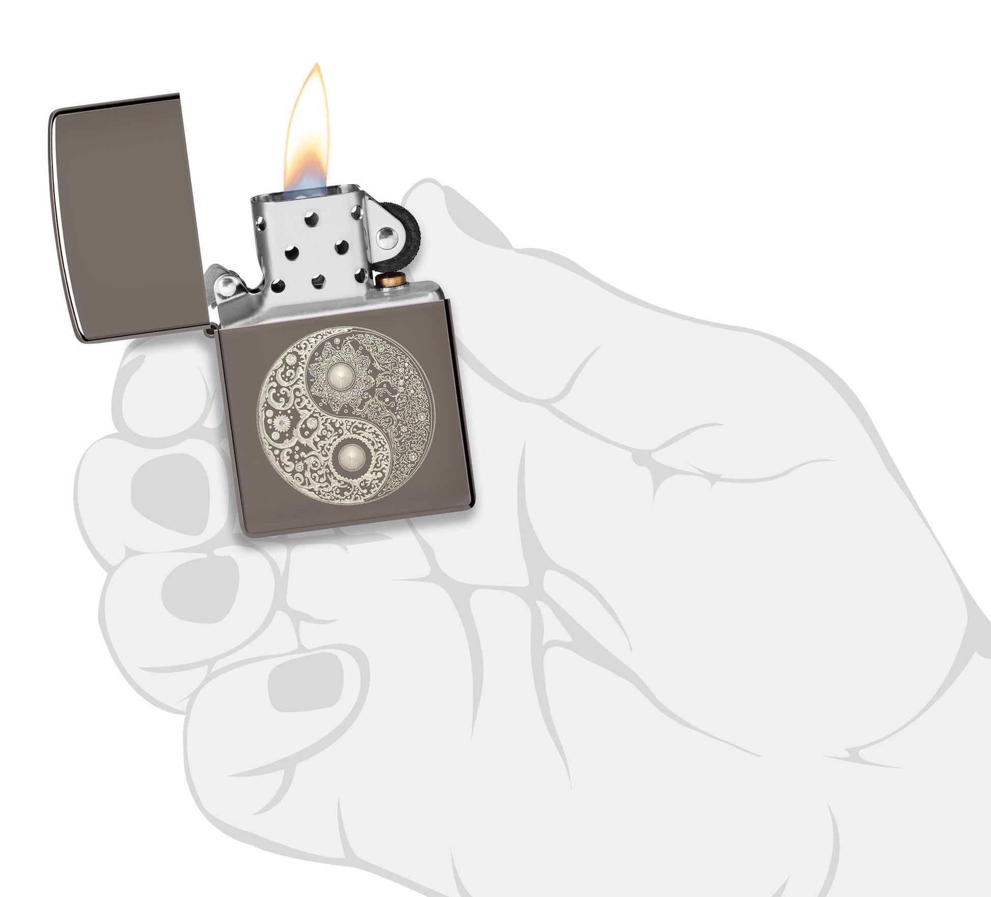 Añada un toque de paz y equilibrio a su colección con este clásico encendedor Black Ice®. Lleno de intrincadas filigranas, el icónico yin y yang aparece en perfecta armonía en un diseño Laser Fancy Fill.