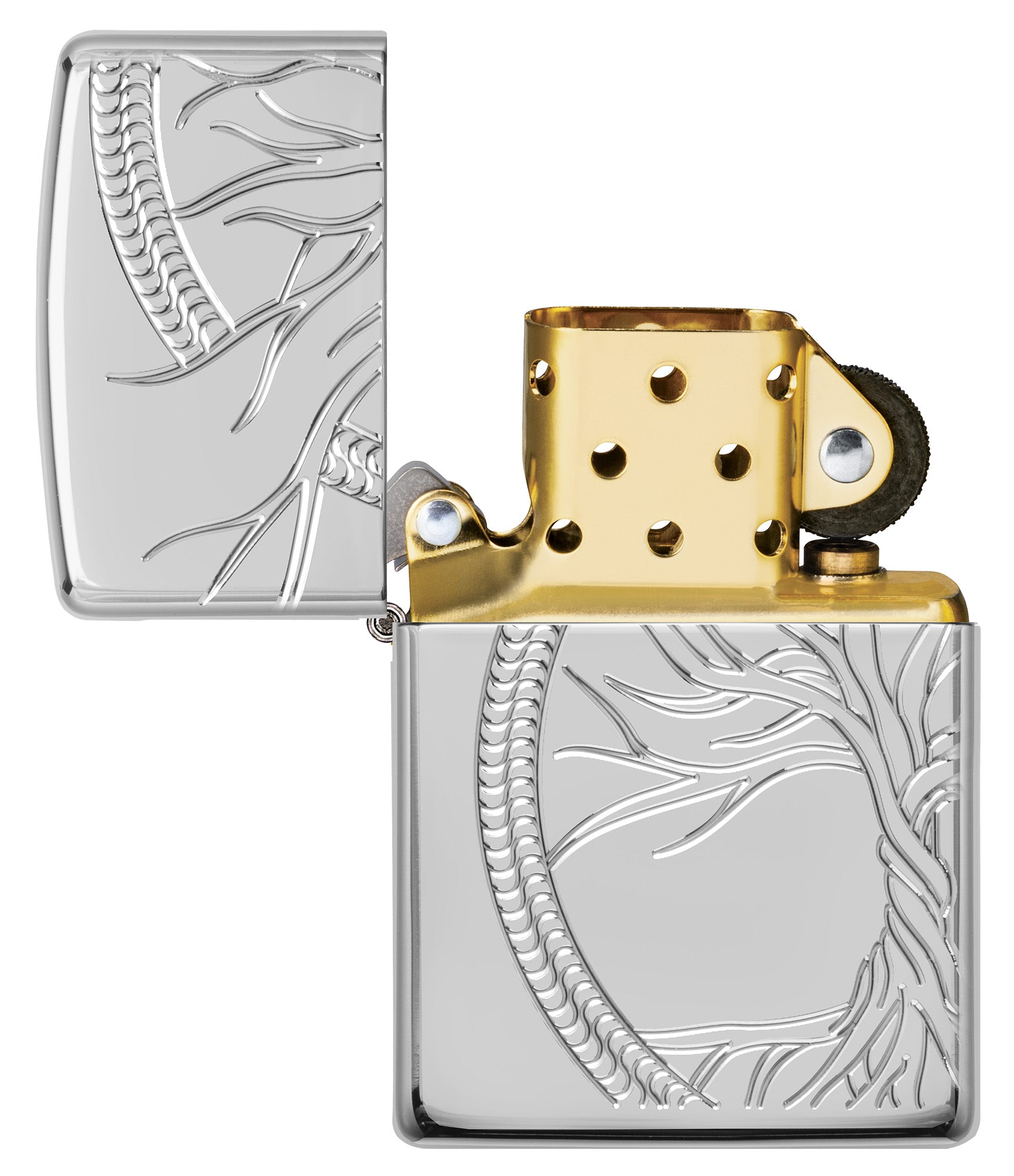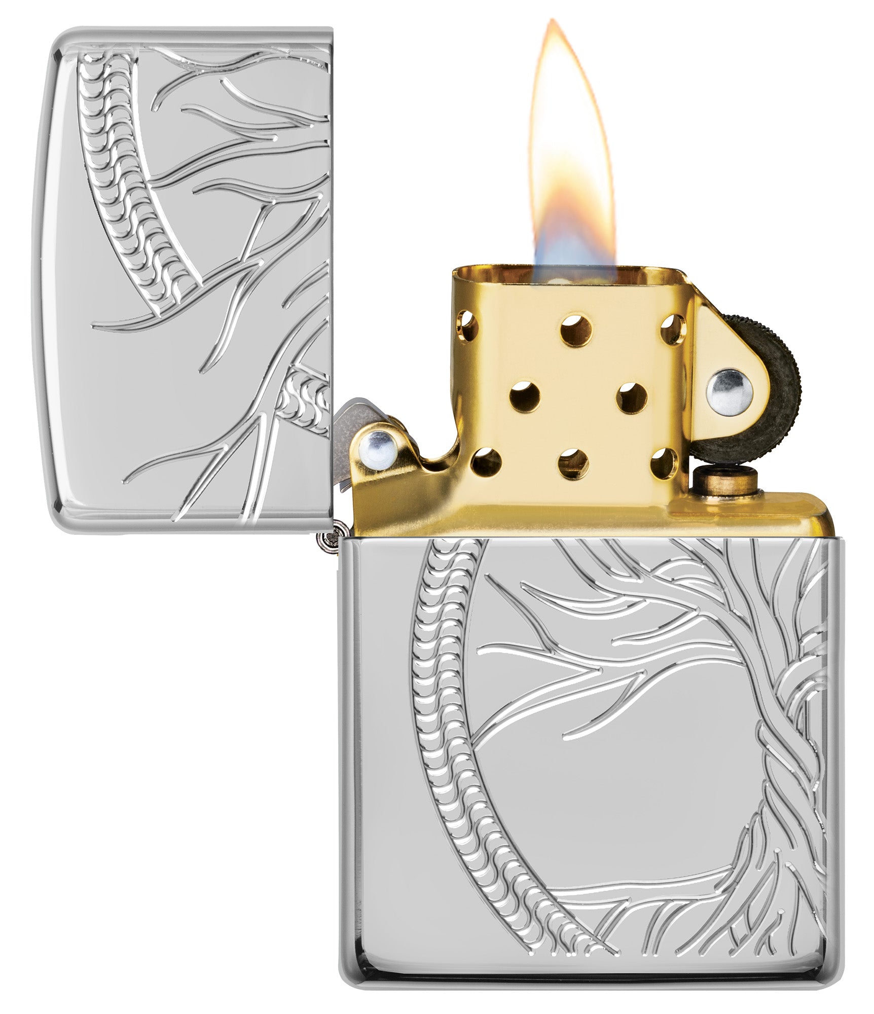 El árbol de la vida es un motivo muy apreciado por muchos aficionados a Zippo. Aquí, este símbolo ancestral de crecimiento personal, fuerza y belleza natural está grabado con el proceso MultiCut de Zippo en todos los lados de este encendedor Armor® de plata esterlina altamente pulida, lo que le confiere un aspecto lujoso y una textura agradable al tacto. Se entrega en una caja de regalo. Para un rendimiento óptimo, rellénelo con combustible para mecheros Zippo.