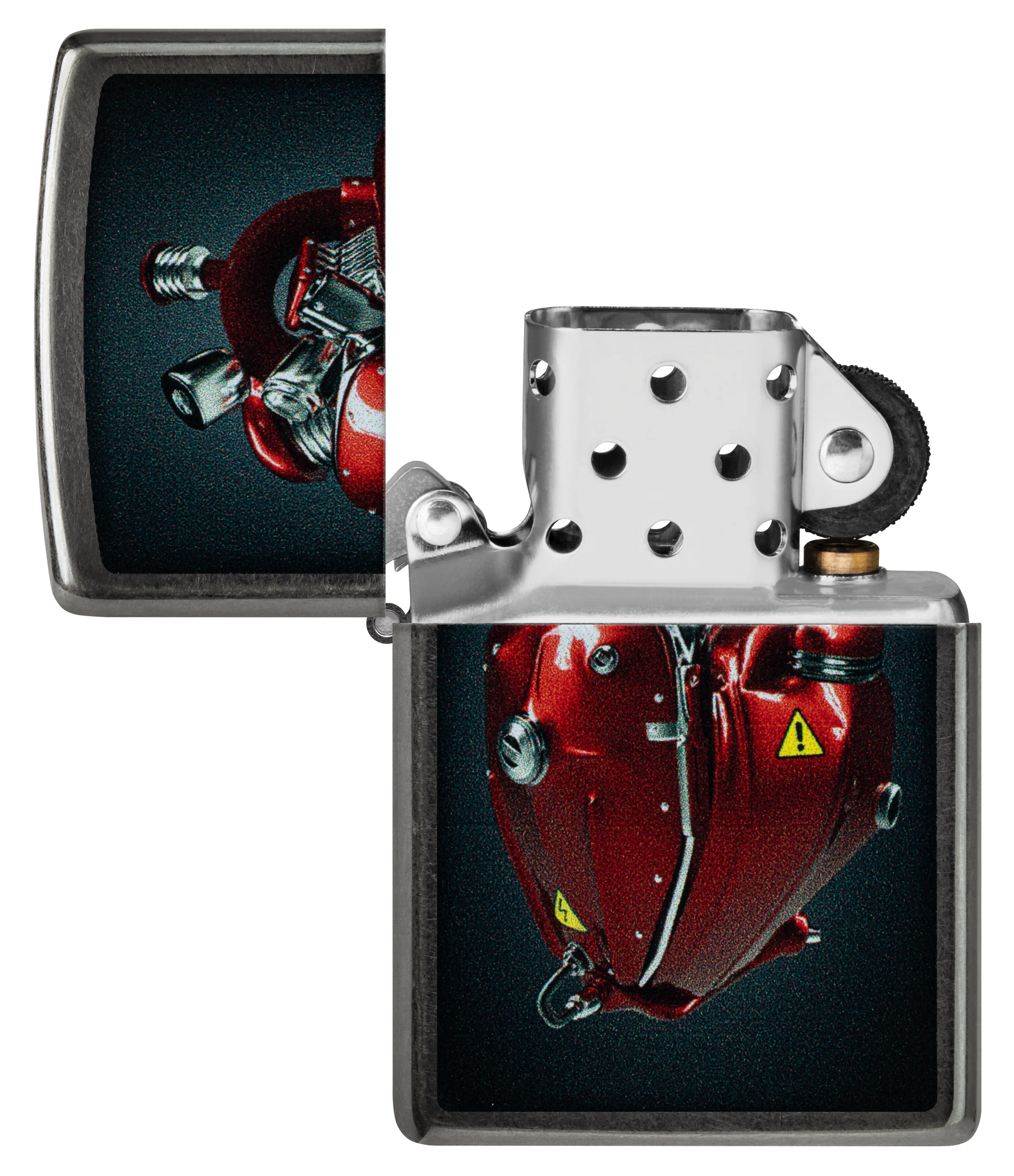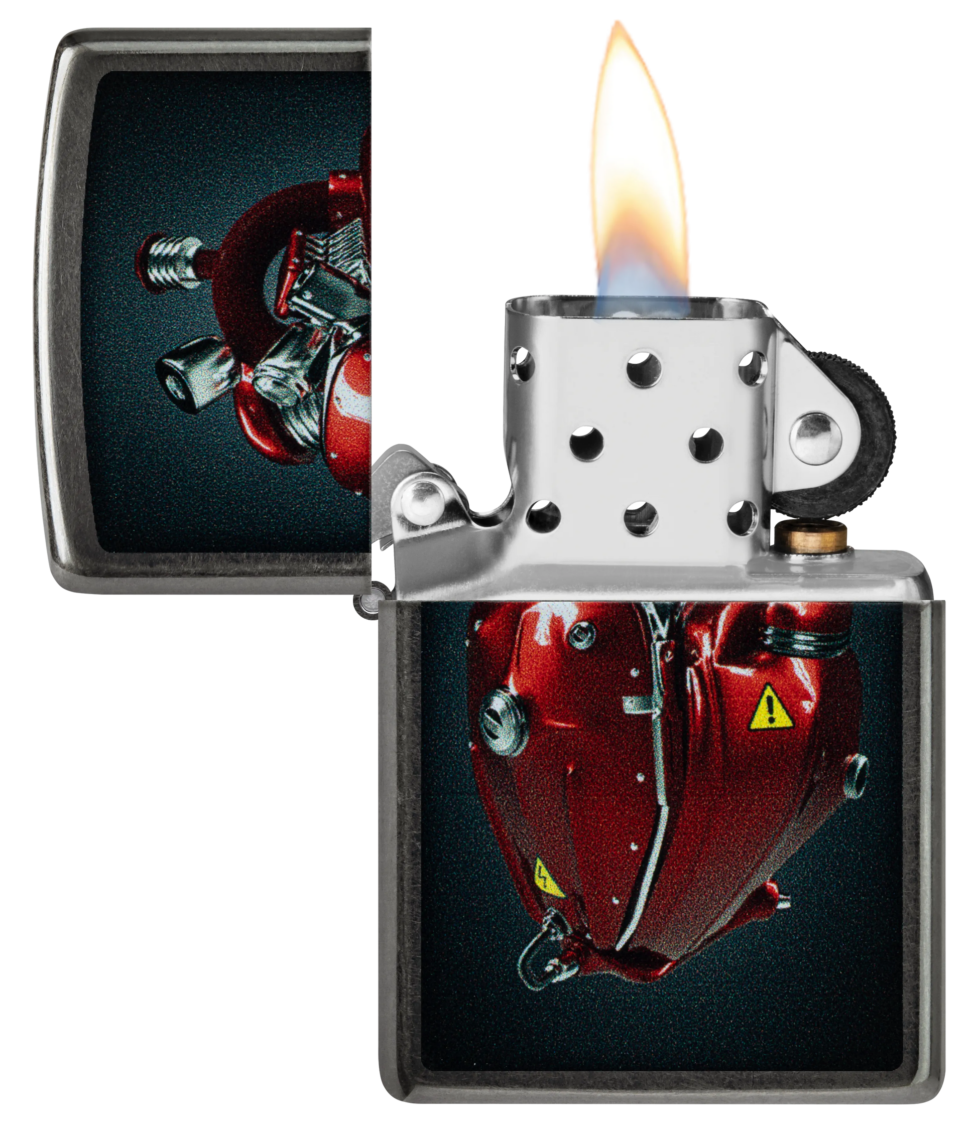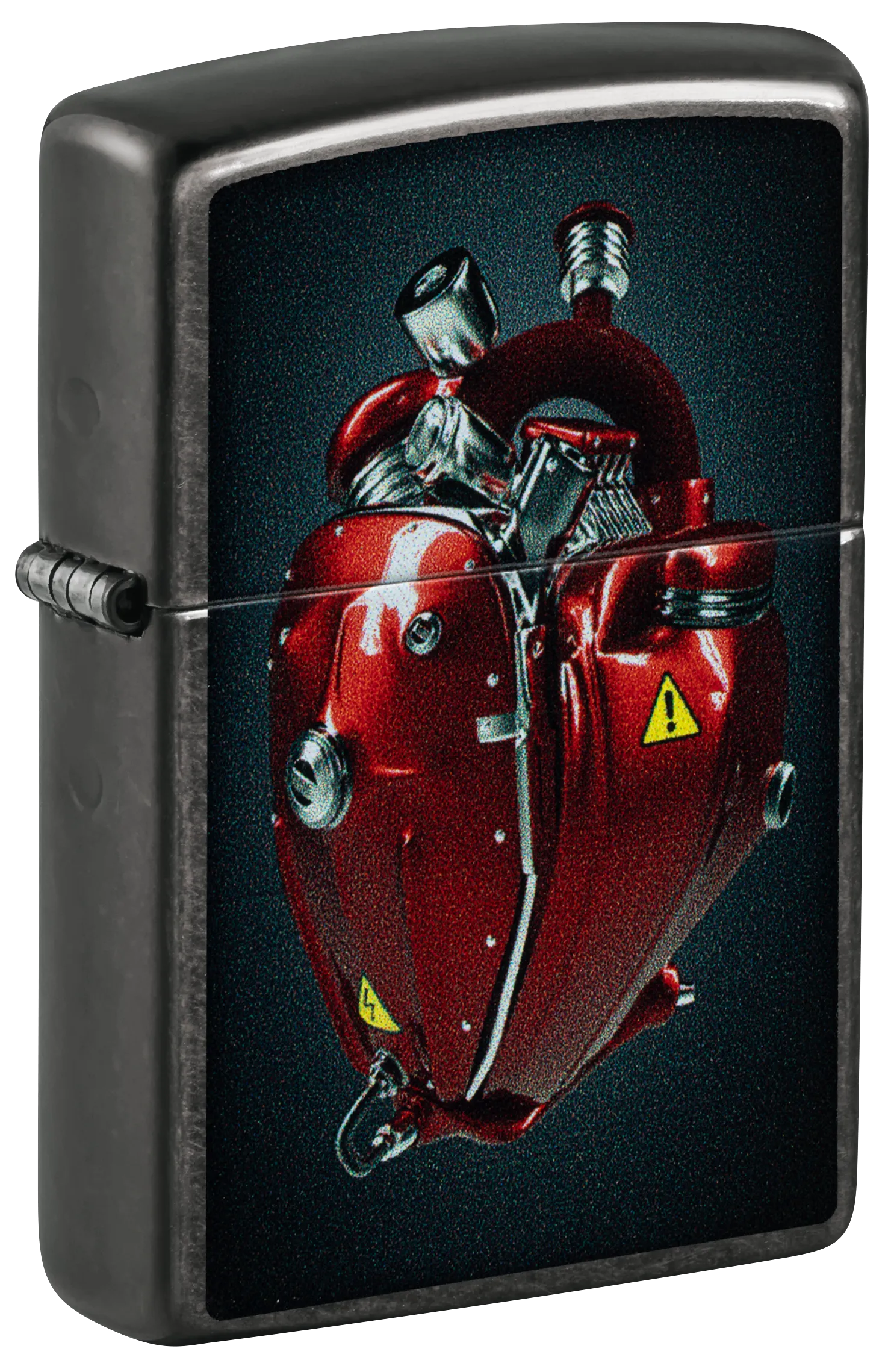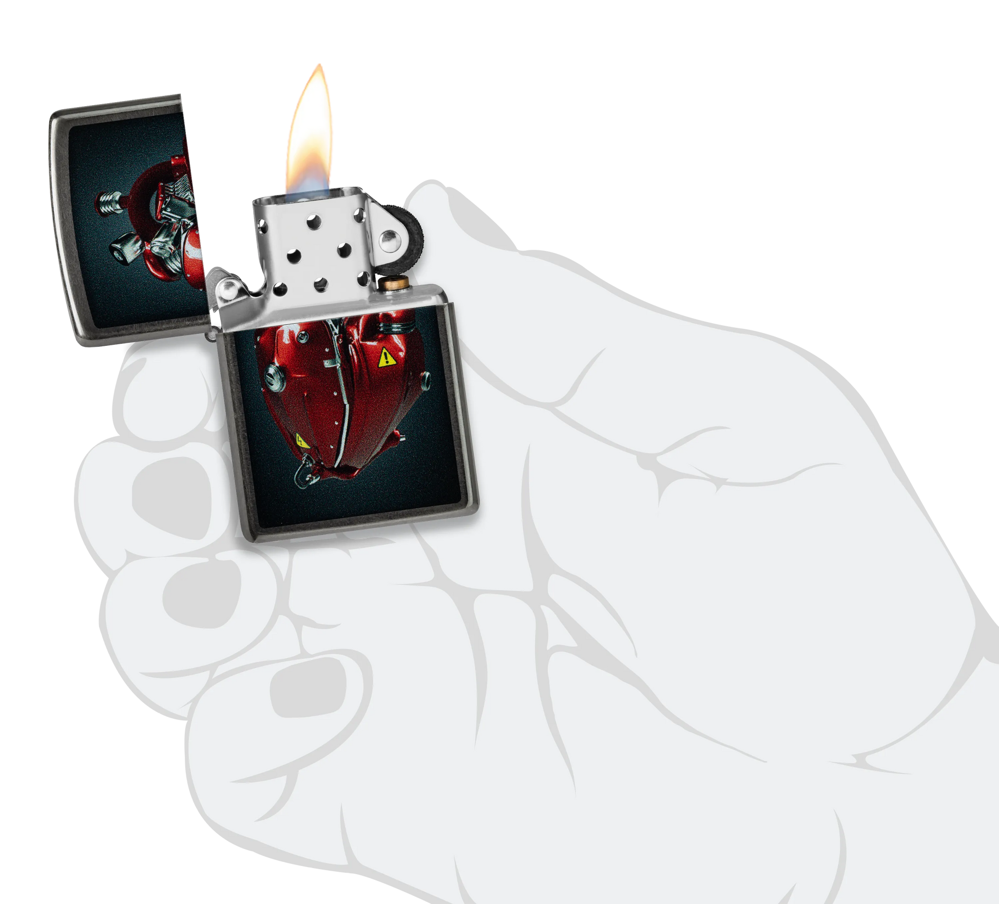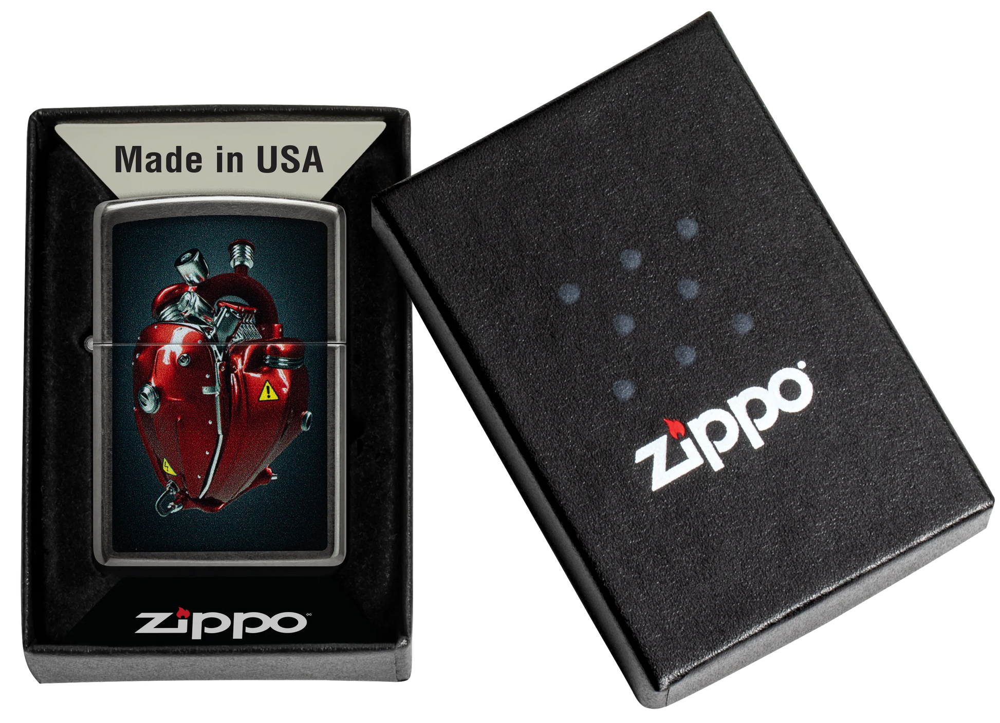 Mantenga vivo su amor con este clásico encendedor Grey. Un motor afinado adopta la forma de un reluciente corazón rojo en un vibrante diseño Color Image.