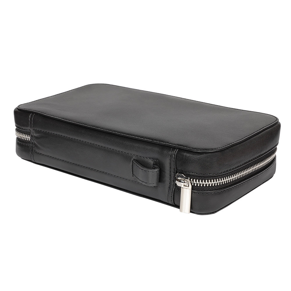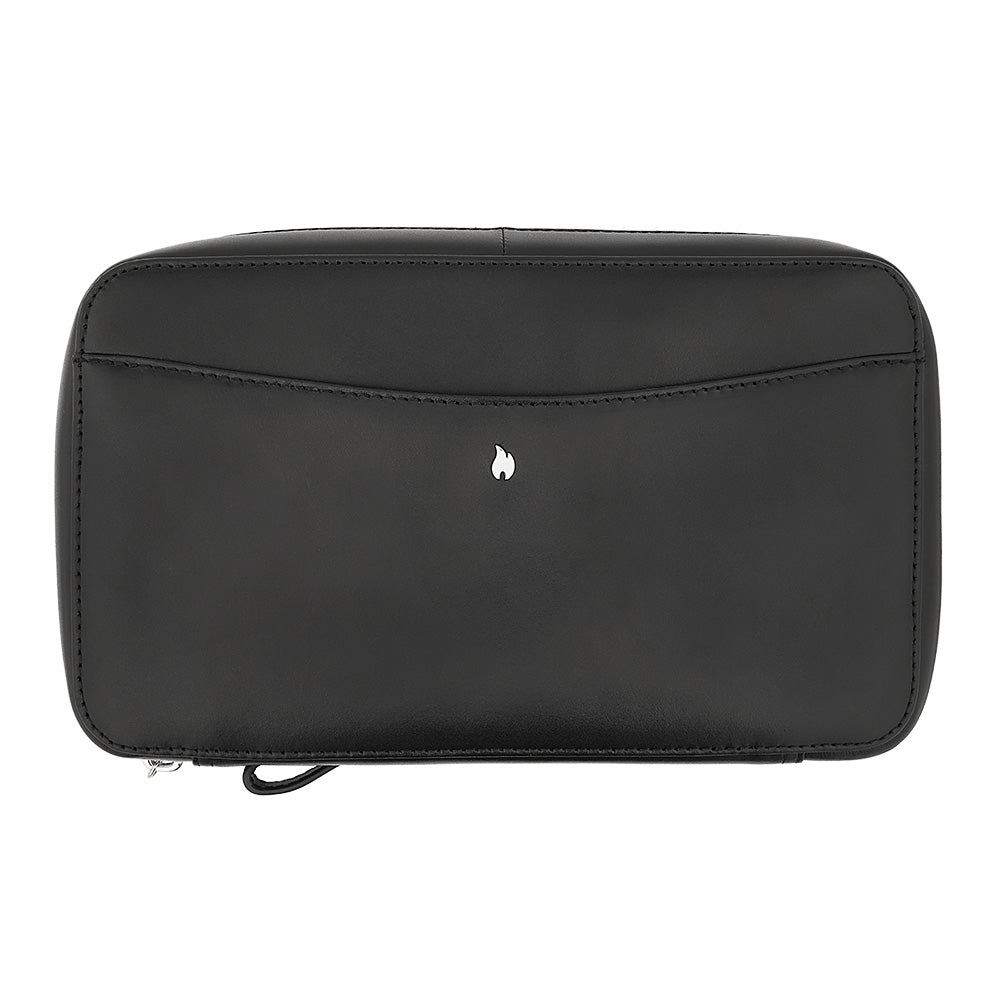 La purera de viaje Signature de Zippo le permitirá viajar con sus puros favoritos de forma segura y con estilo. Su amplia funda con cremallera alberga un compartimento con revestimiento de chapa para cinco puros, además de prácticos bolsillos perfectos para un encendedor Zippo y sus accesorios favoritos (no incluidos). En el exterior, esta elegante purera de cuero auténtico cuenta con un asa ajustable y está decorada con un emblema metálico con la forma genuina de la llama Zippo.