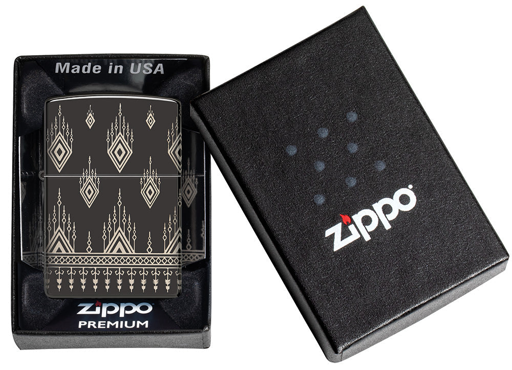 La superficie negra altamente pulida confiere al encendedor una estética noble y atractiva. El patrón tribal grabado en el encendedor con el grabado láser de 360° captura la esencia del diseño oriental y le da al encendedor un toque de exotismo y sofisticación.