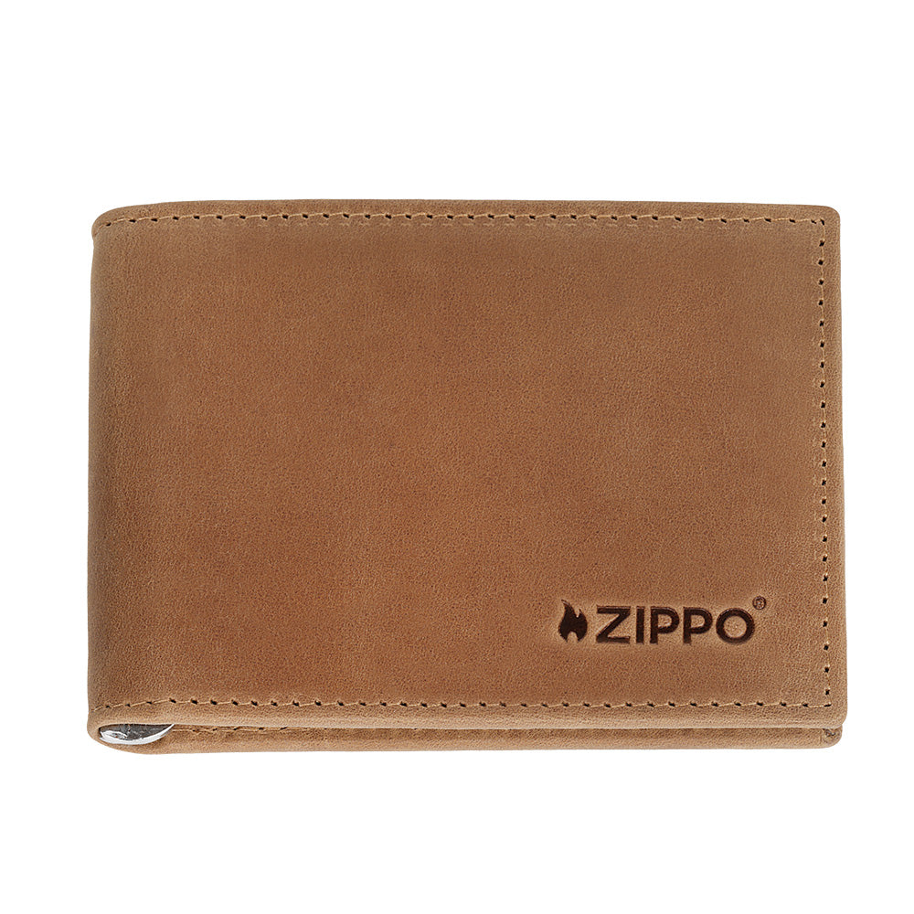 La cartera con clip para billetes Vintage de Zippo añade un estilo relajado y atemporal a sus accesorios esenciales del día a día. Con espacio para hasta seis tarjetas de crédito y un clip incorporado para asegurar los billetes, la suave cartera de cuero auténtico ofrece dos bolsillos deslizantes adicionales, protección RFID y está decorada sutilmente con la marca Zippo.